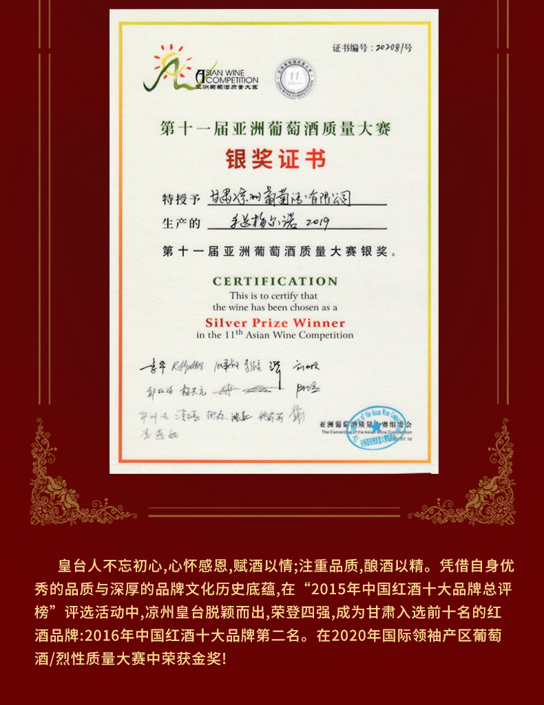 酒品名稱:涼州生態(tài)手選·梅爾諾干紅葡萄酒
