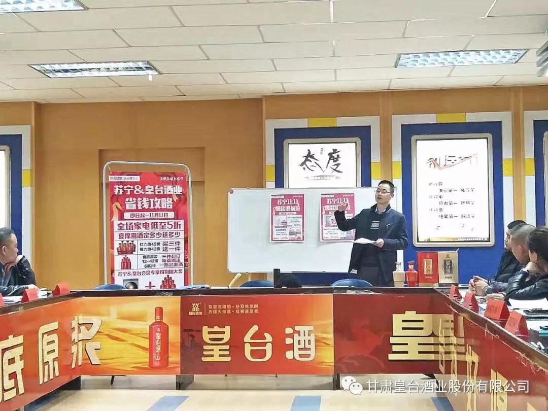皇臺酒業(yè)銷售總監(jiān)白利群在萬達蘇寧店為員工講解皇臺酒雙“十一”銷售優(yōu)惠政策