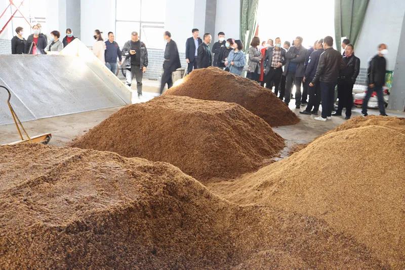 在釀酒車間,酒氣蒸騰,五糧成堆,大家詳細(xì)了解了皇臺(tái)傳統(tǒng)的“老五甄法”純糧釀造工藝,以及“看酒花摘美酒”的摘酒過程。
