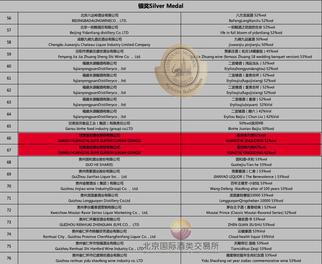 11月9日,比利時(shí)布魯塞爾上午10點(diǎn)整,第21屆比利時(shí)布魯塞爾國(guó)際烈性酒大獎(jiǎng)賽(Spirits Selection by CMB)榜單揭曉,并向全球發(fā)布獲獎(jiǎng)名單。在此次大賽中,皇臺(tái)酒業(yè)生產(chǎn)的金六鼎和銀六鼎,以優(yōu)異的品質(zhì)和獨(dú)特的包裝,在全世界54個(gè)國(guó)家和1400款樣品中脫穎而出,再次榮獲了比利時(shí)布魯塞爾國(guó)際烈性酒大獎(jiǎng)賽兩枚銀獎(jiǎng)。這是繼2019年皇臺(tái)窖底原漿12、18在第20屆比利時(shí)布魯塞爾國(guó)際烈性酒大獎(jiǎng)賽上榮奪金獎(jiǎng)、銀獎(jiǎng)后,再一次斬獲的國(guó)際大獎(jiǎng)榮譽(yù)!