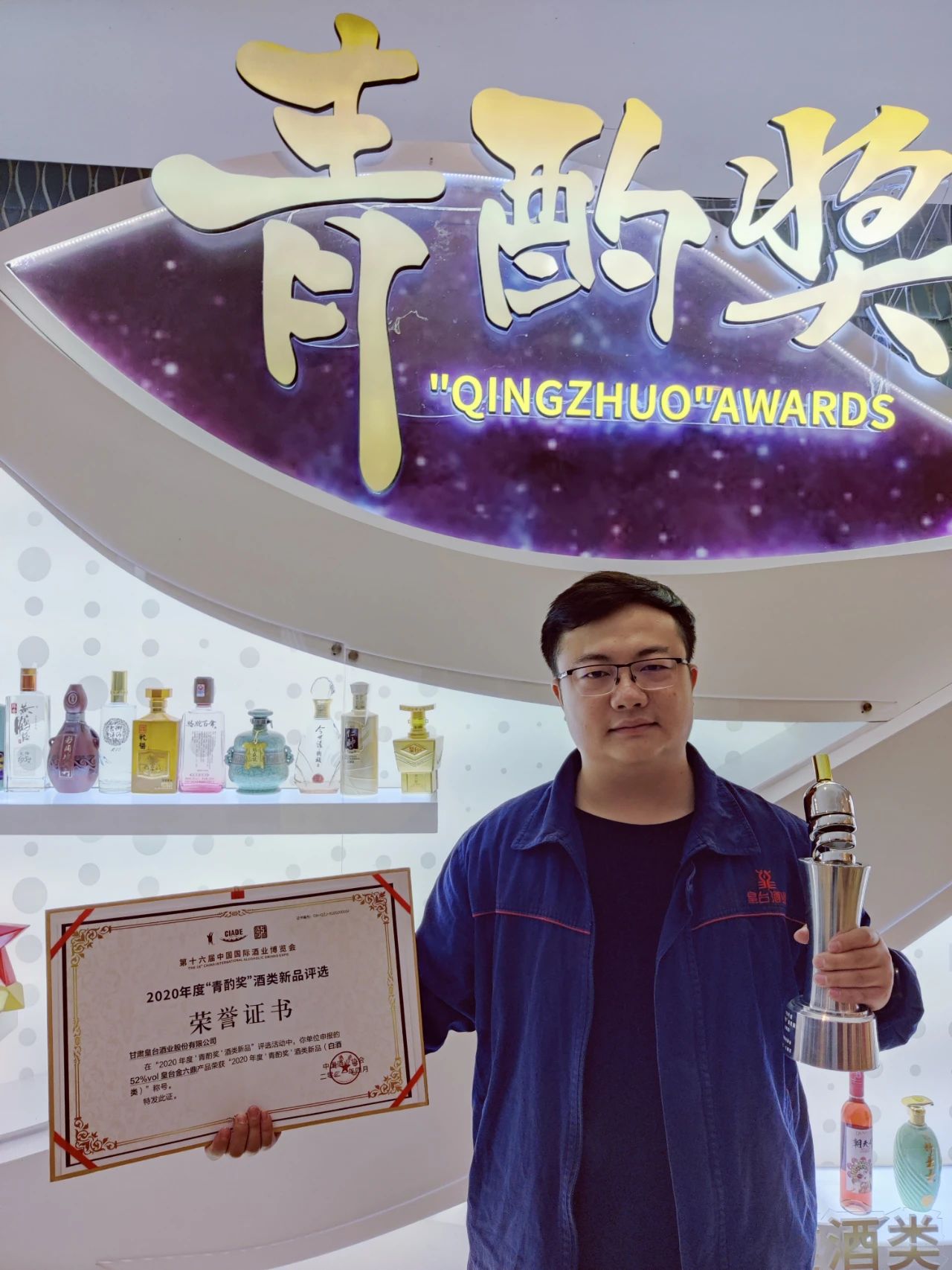 此次頒獎(jiǎng)盛典上,皇臺(tái)金六鼎榮獲2020年度白酒新品最高獎(jiǎng)項(xiàng)「青酌獎(jiǎng)」,這是繼皇臺(tái)窖底原漿18榮獲2019年度白酒新品最高獎(jiǎng)項(xiàng)「青酌獎(jiǎng)」之后,皇臺(tái)酒業(yè)再次在酒博會(huì)上斬獲的至高殊榮。皇臺(tái)酒業(yè)技術(shù)中心酒體設(shè)計(jì)師、工程師、國(guó)家評(píng)委陳清翔代表皇臺(tái)上臺(tái)領(lǐng)獎(jiǎng)