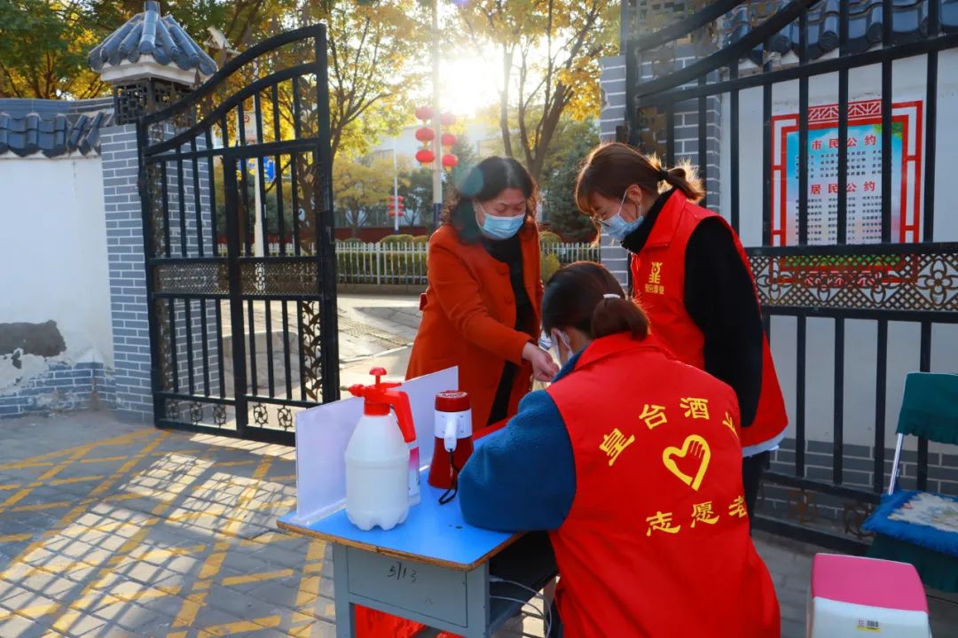 與此同時,皇臺酒業(yè)積極加入到這場抗疫戰(zhàn)斗中,組織20多人的紅馬甲志愿者隊伍,不畏嚴(yán)寒,堅守崗位,每天按時按點支援和配合社區(qū)疫情防控檢測點的服務(wù)工作。