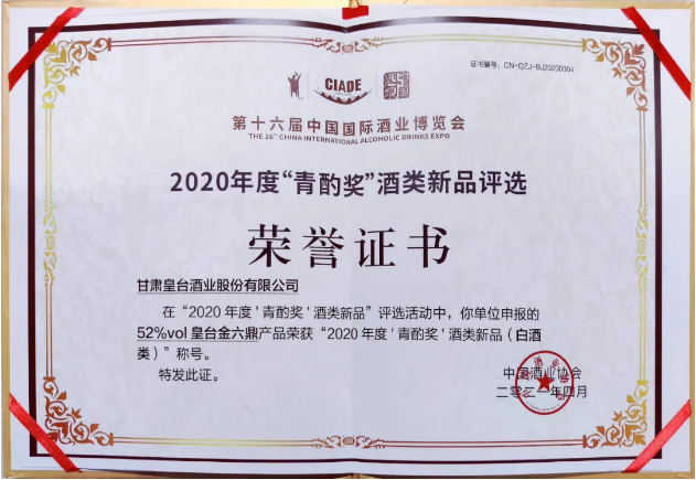 5月15日,皇臺(tái)窖底原漿18在第二屆甘肅品牌論壇會(huì)上,榮獲2021年甘肅好品牌“最具影響力產(chǎn)品品牌”榮譽(yù)稱號(hào)。