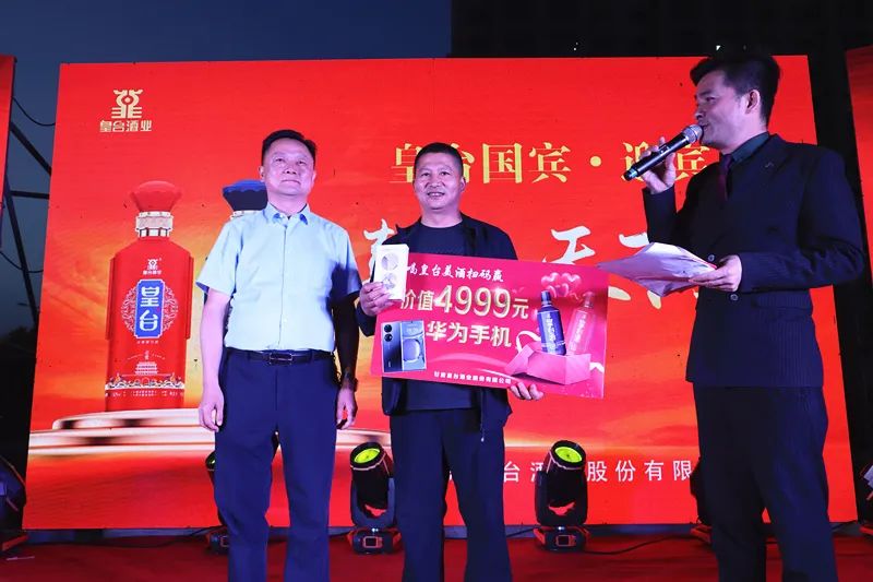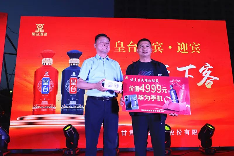 皇臺酒業(yè)于今年5月1日起,開展了購買窖底原漿即可有機(jī)會喜中4999元手機(jī)大獎和微信紅包的活動,短短一月多的時間,就已有4位消費(fèi)者在購買窖底原漿用酒中,喜中了價值4999元的豪華手機(jī)。下圖是第4位中手機(jī)大獎的消費(fèi)者,在路演活動現(xiàn)場領(lǐng)取豪華手機(jī)一部。