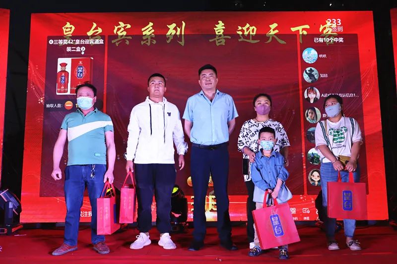路演抽獎活動分為三輪:第一輪三等獎抽取10名觀眾,獎品為皇臺迎賓酒兩盒;第二輪二等獎抽取5名幸運(yùn)觀眾,獎品為皇臺國賓酒兩盒;第三輪一等獎抽取2名幸運(yùn)觀眾,獎品窖底原漿12 兩盒?,F(xiàn)場觀眾只要用微信掃大屏上的二維碼,即可參與抽獎活動。