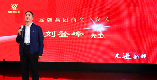 新疆兵團(tuán)商會(huì)會(huì)長(zhǎng)劉登峰在推介會(huì)上發(fā)言