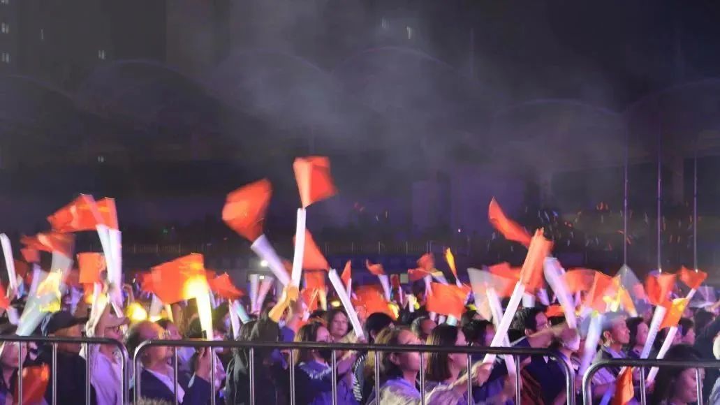 現(xiàn)場氛圍隨著音樂的節(jié)奏越來越熱烈,觀眾們揮舞著手中的熒光棒,大聲跟唱著經(jīng)典歌曲。