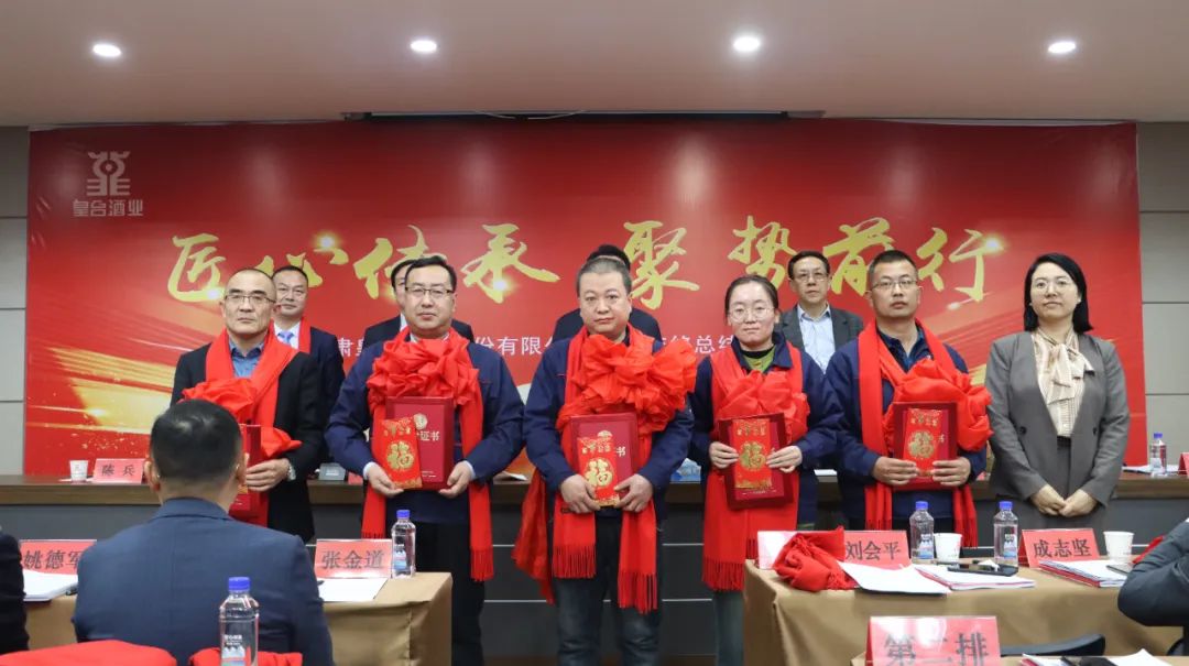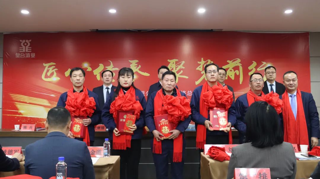 2025年1月21日,甘肅皇臺酒業(yè)股份有限公司召開2024年度工作總結(jié)暨表彰大會。皇臺酒業(yè)董事長趙海峰,董事、總經(jīng)理代繼陳,監(jiān)事會主席杜利,副總經(jīng)理楊利兵,副總經(jīng)理、總工程師陳兵,副總經(jīng)理、營銷總監(jiān)張金道,財務(wù)總監(jiān)劉會平,董事會秘書成志堅,營銷副總監(jiān)姚德軍,以及各銷售公司負責人、區(qū)域經(jīng)理和業(yè)務(wù)員代表、各部門管理人員、銷售冠軍、先進個人、先進集體及員工代表共同參加了會議。